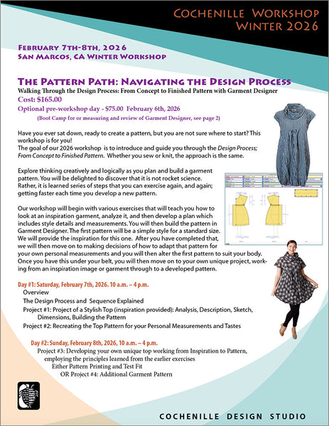 The goal of our 2026 workshop is to introduce and guide you through the Design Process; From Concept to Finished Pattern. Whether you sew or knit, the approach is the same.